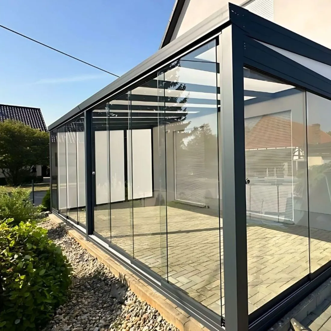 Całoroczne użytkowanie, łatwa konserwacja i nowoczesny design sprawiają, że zadaszenie staje się nie tylko praktycznym dodatkiem, ale integralną częścią domu, która codziennie zwiększa Twój komfort.