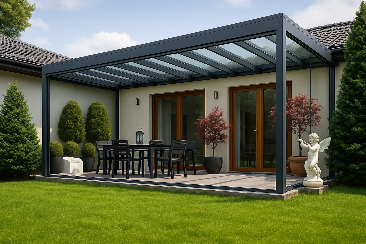 Całoroczne użytkowanie, łatwa konserwacja i nowoczesny design sprawiają, że zadaszenie staje się nie tylko praktycznym dodatkiem, ale integralną częścią domu, która codziennie zwiększa Twój komfort.