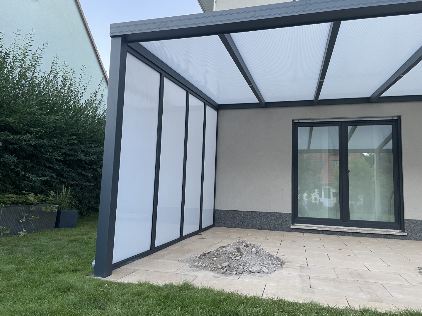 W tej lokalizacji montujemy pergole wykonane z aluminium malowanego proszkowo, które wyróżnia się odpornością na warunki atmosferyczne i całkowitym brakiem konieczności konserwacji. Dach może powstać z mlecznego poliwęglanu, szkła lub lameli – dobieramy go w zależności od potrzeb klienta i położenia tarasu względem stron świata.