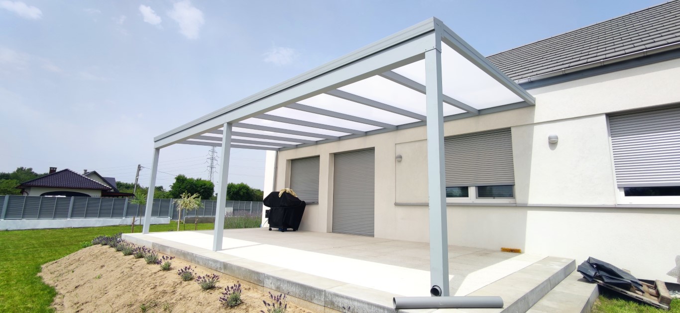 Zastosowane materiały zapewniają trwałość na długie lata. Aluminiowa konstrukcja nie wymaga konserwacji, a dach z poliwęglanu doskonale znosi zmienne warunki atmosferyczne. Klienci mogą korzystać z tarasu bez względu na porę roku – również wtedy, gdy pogoda zaskakuje.